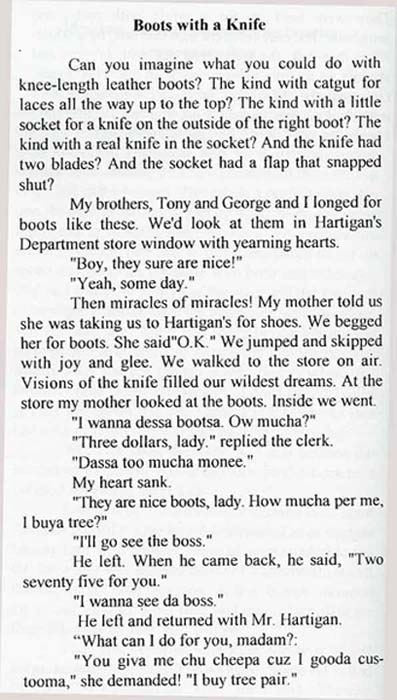 Below are excerpts from Frank's book, Tory Hill and Other Short Stories.